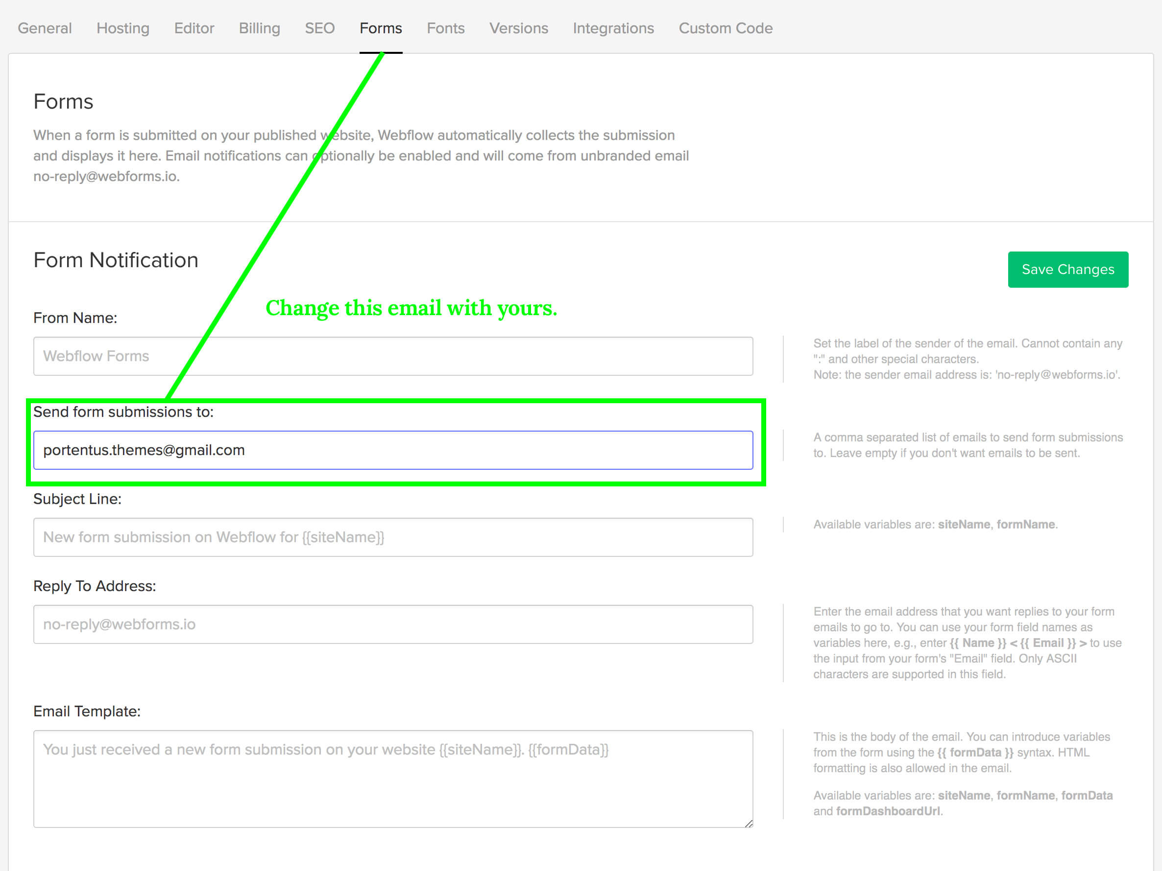 If you want to receive the messages from your contact form you need to update the Notification email address.